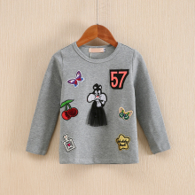 童装◆兔系列品牌折扣2017春装新款韩版流苏女童贴布上衣长袖T恤