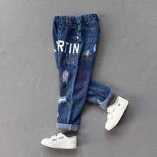品牌正品尾货2017春款儿童装时尚亮片破洞涂鸦男女童牛仔裤