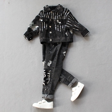 品牌正品尾货2017春款儿童装时尚亮片补丁女男童牛仔套装