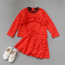 宝儿系列专柜正品2017春秋款儿童装时尚蕾丝两件套女童套装61638