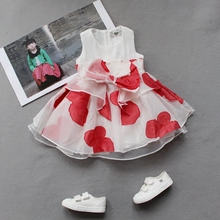 品牌正品尾货2017夏款女童连衣裙时尚大红花蝴蝶结女童背心裙裙子