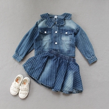 宝儿系列专柜正品2017夏款儿童装时尚条纹牛仔两件套女童套装