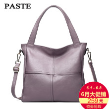 PASTE新款单肩包头层牛皮拼接女包手提斜挎真皮女包大容量软皮包