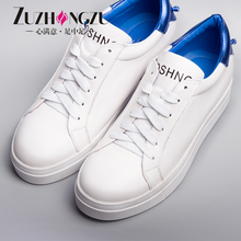 足中足春季新款小白鞋女系带真皮平底休闲鞋韩版厚底内增高单鞋