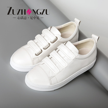 足中足2017春季新款休闲鞋女平底真皮单鞋魔术贴板鞋厚底小白鞋