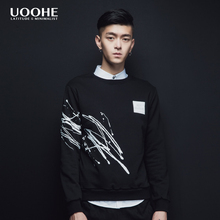 UOOHE2017春季新款潮男拼接时尚黑色简约卫衣 长袖圆领外套