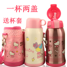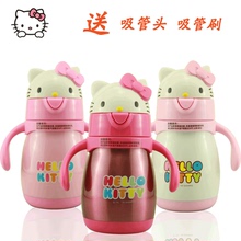 hellokitty保温杯带吸管宝宝学饮杯迷你婴儿喝水杯防漏手柄304钢