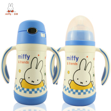 米菲保温奶瓶两用带吸管幼儿学饮杯一杯三用鸭嘴喝水杯带手柄礼盒