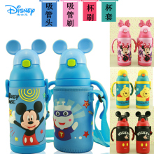 迪士尼儿童水杯宝宝吸管保温杯带手柄304不锈钢婴儿学饮杯防漏