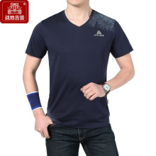 战地吉普短袖t恤男士纯色V领运动汗衫夏季新款短袖男体恤上衣半袖
