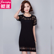 加肥加大码女装2017夏装新款胖mm夏季200斤上衣胖妹妹显瘦连衣裙