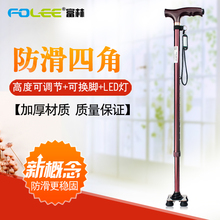 富林 拐杖老人铝合金小四脚轻便拐棍老年人可伸缩带灯手杖助行器