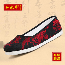 加米羊老北京布鞋女鞋纯手工千层底民族风红黑凤凰刺绣浅口妈妈鞋