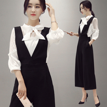套装女两件套2016新款秋季职业OL小香风阔腿裤背带裤连体裤长裤潮