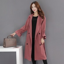 2017春季新款韩版中长款收腰双排扣纯色宽松百搭女式风衣外套女潮