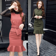 鱼尾连衣裙三件套装春季韩版修身显瘦小香风名媛气质荷叶边包臀裙