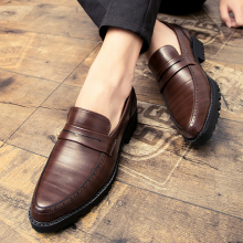 英伦厚底增高休闲皮鞋男一脚蹬尖头皮鞋男韩版潮男复古百搭男鞋子