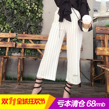 2016新款春夏季阔腿裤女九分裤高腰直筒裤条纹宽腿大码宽松休闲裤