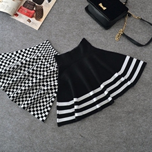2017春秋冬女新款黑白格子打底针织短裙高腰蓬蓬伞裙半身裙A字裙
