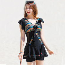 加肥加大码连体平角泳衣女时尚妈妈款遮肚显瘦裙式保守温泉游泳衣