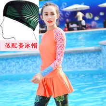 时尚连体防晒游泳衣女保守泳装长袖长裤显瘦遮肚大码专业运动泳衣