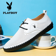 花花公子男鞋白色男士镂空皮鞋真皮夏季透气凉鞋百搭休闲鞋洞洞鞋