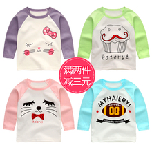 2017新款宝宝T恤长袖插肩上衣男 女童纯棉打底衫春秋薄款套头圆领
