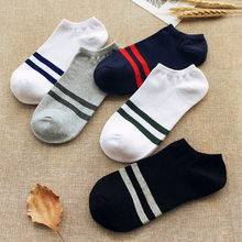 袜子男士短袜纯棉四季运动两条杠棉袜防臭浅口原宿学院风条纹船袜