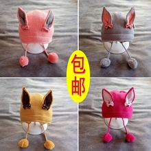 韩版儿童宝宝女秋冬3-6-12个月加绒婴儿针织帽针织假发帽子冬季