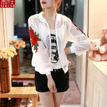 西多士2017夏季韩版玫瑰刺绣白色短外套女轻薄透视防晒衣夹克上衣