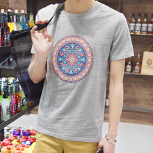 夏季男装新款短袖T恤男士潮男修身印花青少年圆领打底小衫上衣服