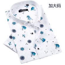 加肥加大短袖衬衫时尚休闲肥佬男装胖子潮宽松特大码半袖印花衬衣