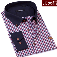 男式格子长袖衬衣 大号胖子肥佬特大异色领男装加肥加大休闲衬衫