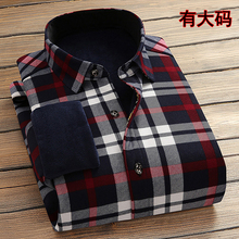 加肥加大加绒男衬衫胖子肥佬宽松大号加厚冬装特大码长袖保暖衬衣