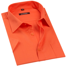 桔红色短袖衬衫 佐马仕夏季时尚休闲男装纯色上衣桔红半袖男衬衣