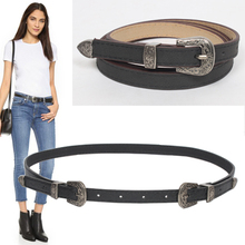 欧美复古银扣双头扣雕花腰带 女士装饰针扣连衣裙百搭细新款皮带