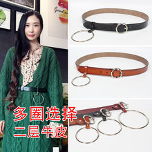 时尚百搭装饰女士真皮大圆环腰带细牛皮韩版个性铁圈皮带潮流裤带