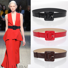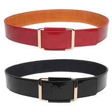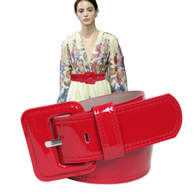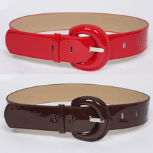 新款秋冬漆皮圆头红色装饰宽皮带 配连衣裙大衣腰带女士百搭腰封