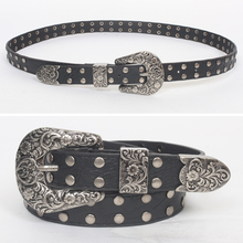2016新款朋克风铆钉时尚雕花细皮带裤带欧美针扣装饰女士黑腰带