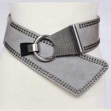 铆钉朋克风百搭灰色宽皮带配连衣裙子装饰腰带女士勾扣斜跨宽腰封