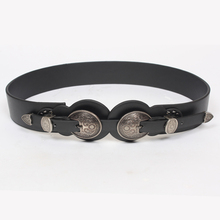 雕花双头扣黑色女士腰带女宽腰带大衣装饰百搭宽皮带时尚复古腰封