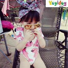 韩国新款儿童泳衣 娃娃印花女孩连体泳衣 可爱多层连衣裙宝宝泳衣