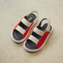 2017夏季新款拼色防滑软底真皮男童凉鞋中大童宝宝沙滩鞋女童鞋子