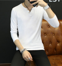 男士长袖秋冬T恤潮男装V领体恤纯棉修身打底t桖纯色厚上衣服加绒
