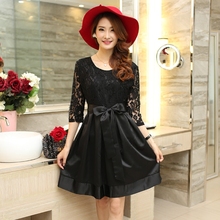 2015春装新款加大码女装胖mm妹妹秋冬修身显瘦宽松打底蕾丝连衣裙