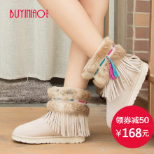 步伊鸟 冬季兔毛流苏靴加厚保暖雪地棉时尚显瘦平底雪地靴