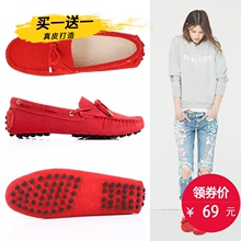 步伊鸟2017新款春夏真皮豆豆鞋 平底蝴蝶结休闲女单鞋韩版驾车鞋
