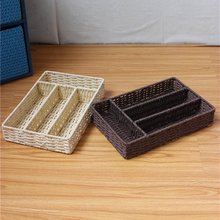 【天天特价】草编桌面收纳盒分类收纳筐 餐桌刀叉收纳篮储物整理