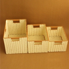 【天天特价】草编收纳筐田园零食编织筐无盖储物盒编制整理箱衣物
