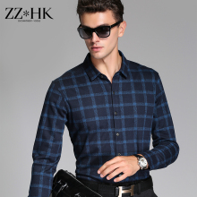 商务休闲中年男士长袖衬衫秋季丝光棉羊毛格子衬衣印花免烫男装夏